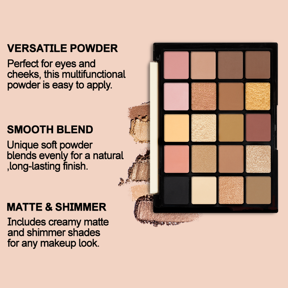 أطلق العنان لإبداعك مع لوحة ظلال العيون متعددة الاستخدامات المكونة من 20 لونًا، والتي تتميز بمجموعة مذهلة من الألوان من الألوان المحايدة الناعمة إلى النغمات الجريئة النابضة بالحياة. هذه اللوحة مثالية لصياغة إطلالات مكياج العيون التي لا نهاية لها، مع مزيج فريد من اللون الوردي والظلال البرتقالية الدافئة والأسود العميق. سواء كنت تبحثين عن إطلالة نهارية خفيفة أو إطلالة مسائية درامية، فإن مزيج اللمسات النهائية غير اللامعة والمعدنية يسمح بتطبيق متعدد الاستخدامات ومزج سلس.