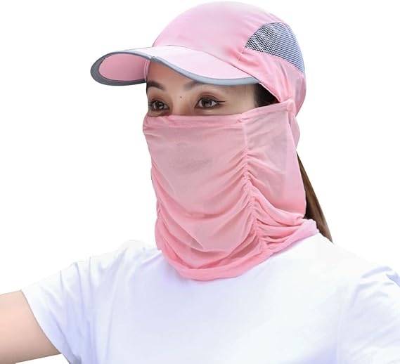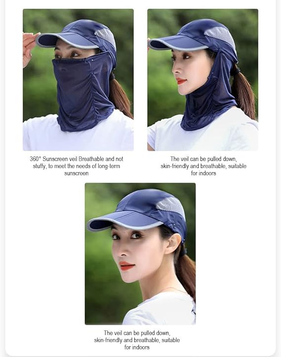 قبعة شمس صيفية قابلة للطي، غطاء للوجه برقبة قابلة للفصل