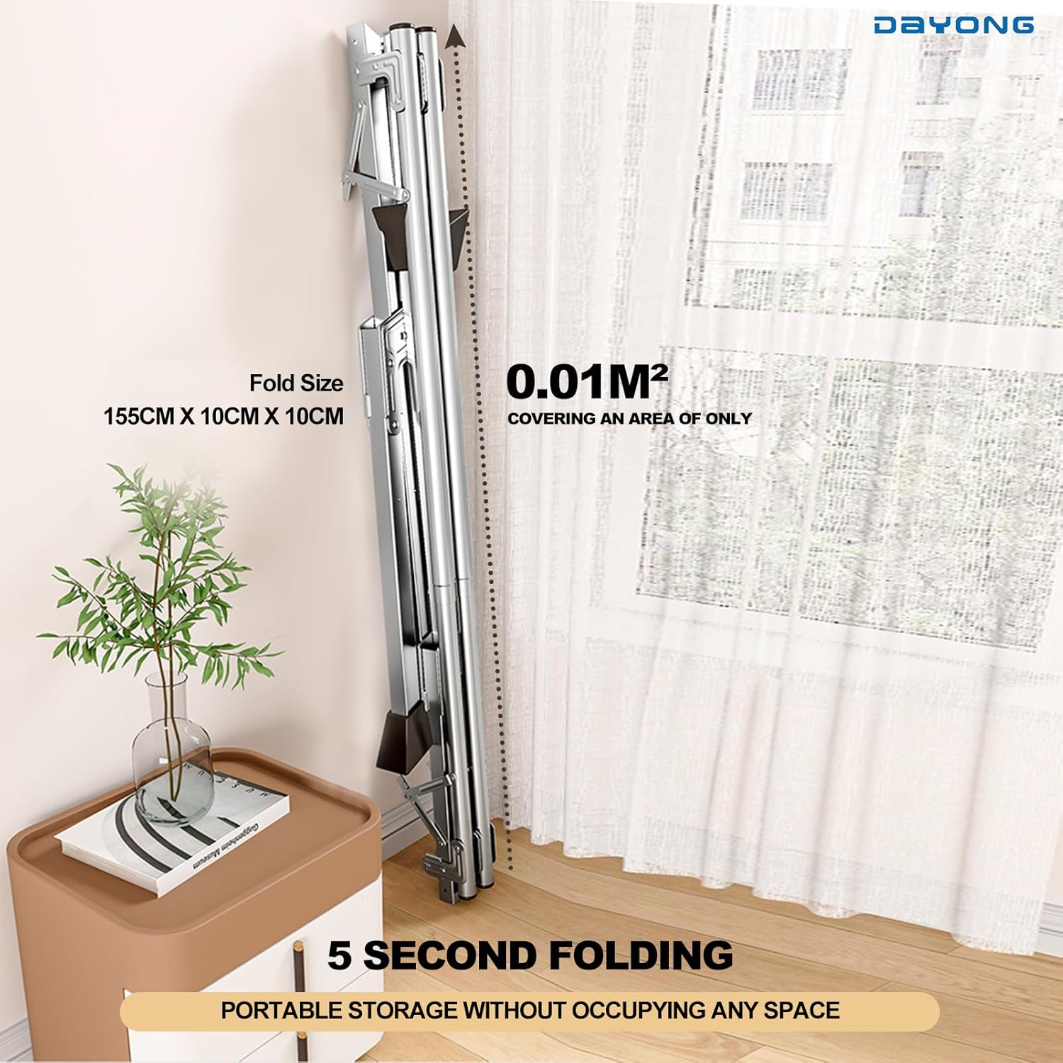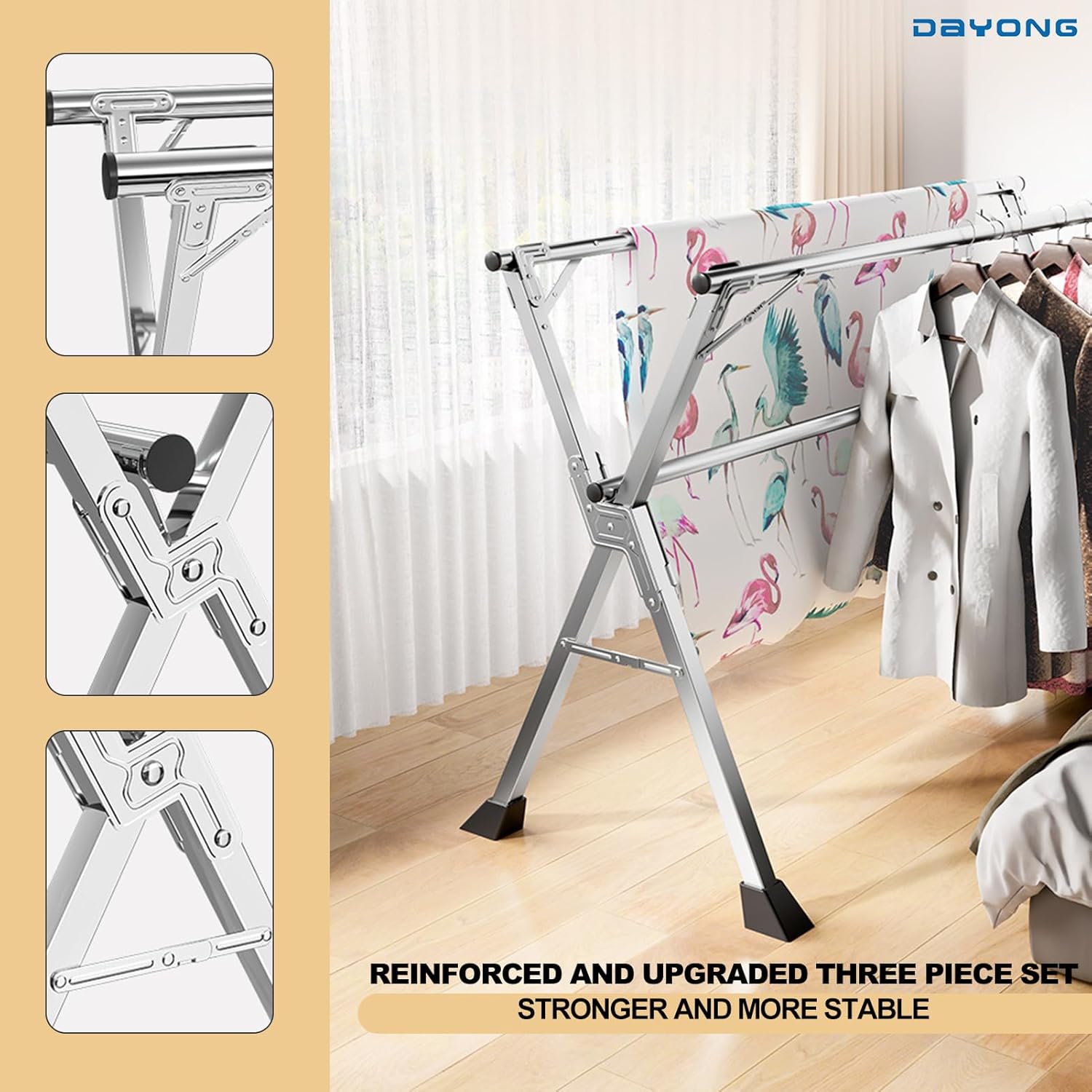رف تجفيف الملابس القابل للطي والمصنوع من الفولاذ المقاوم للصدأ عالي التحمل مع قضبان ثلاثية قابلة للتعديل