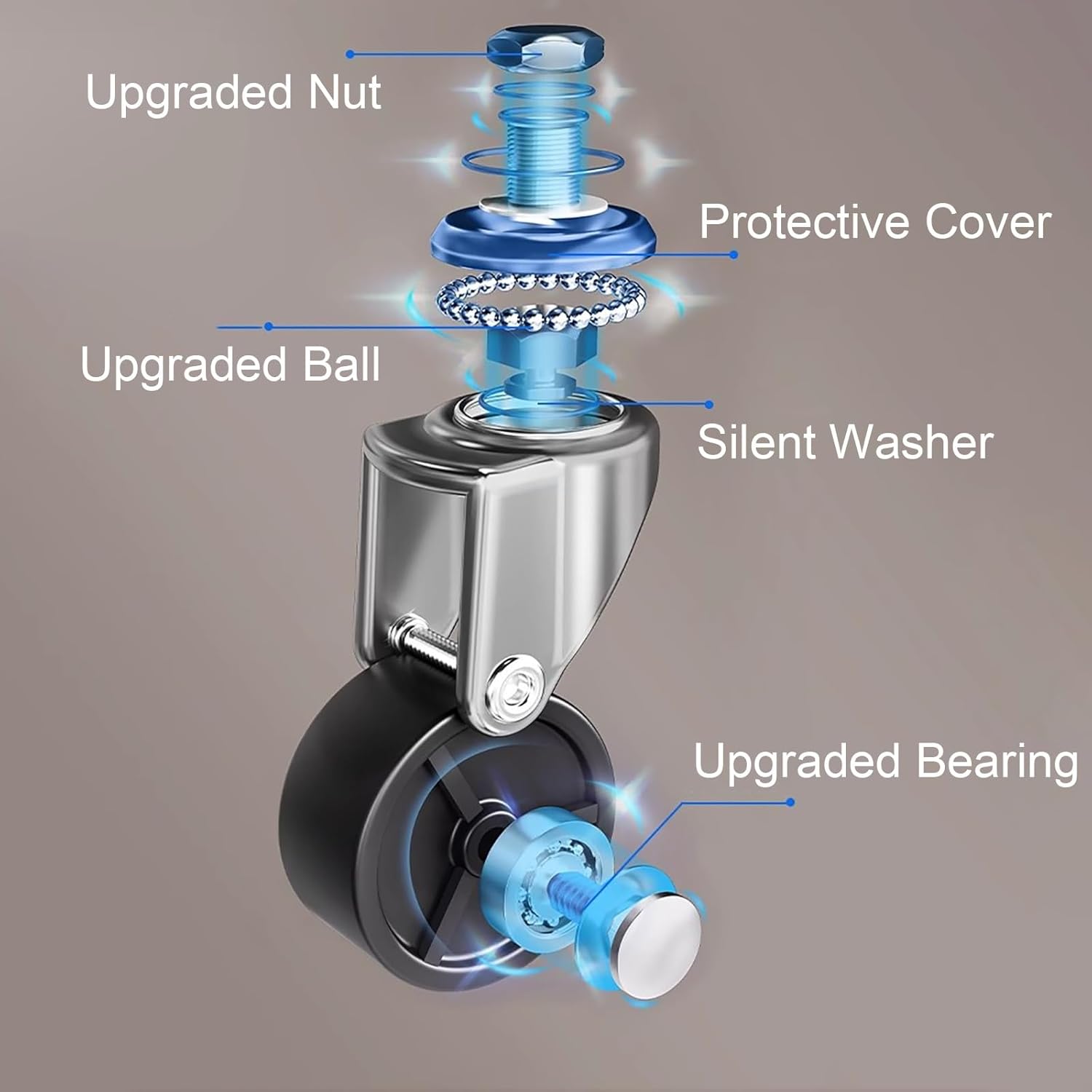 - سهولة الحركة والهدوء: مزودة بعجلات متعددة المحامل، تتحرك رفوف غرفة النوم بسلاسة وهدوء. تتيح خاصية الدوران بزاوية 360 درجة سهولة الحركة، كما أن خاصية القفل تُبقيها ثابتة عند الحاجة.