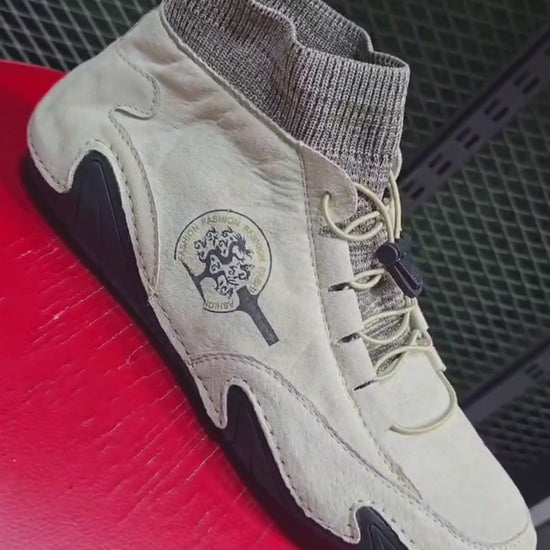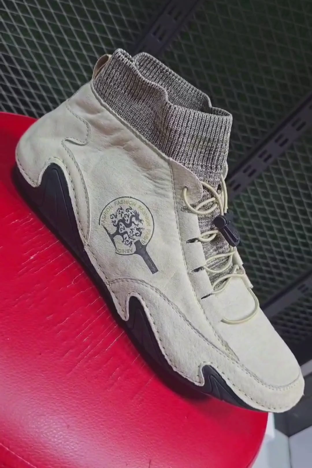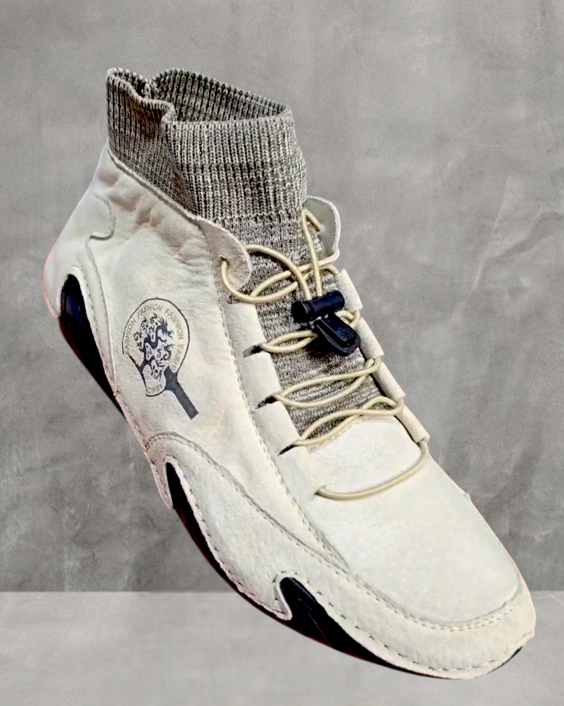 - المميزات: أحذية رجالية كاجوال حتى الكاحل، عصرية، عالية الرقبة، رباط حذاء مرن، ياقة محبوكة، خياطة يدوية ومبطنة بالفرو