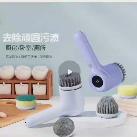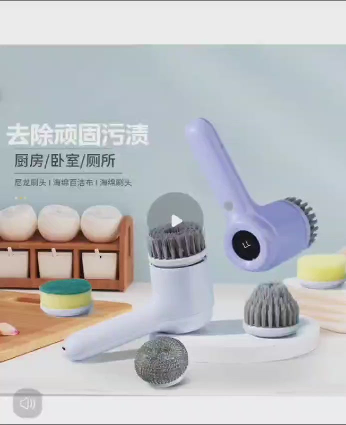 فرشاة كهربائية متعددة الوظائف للتنظيف مع مؤشر LED و 5 رؤوس فرشاة