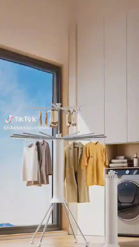 - أكثر تحملاً من الرفوف الخشبية، موفرة للمساحة. يمكن لرف الملابس ثلاثي القوائم أن يحل محل حبل الغسيل الذي يحتاج إلى مساحة أرضية واسعة. مصنوع من الفولاذ المقاوم للصدأ، ويمكن وضعه في الهواء الطلق لمقاومة سوء الأحوال الجوية.