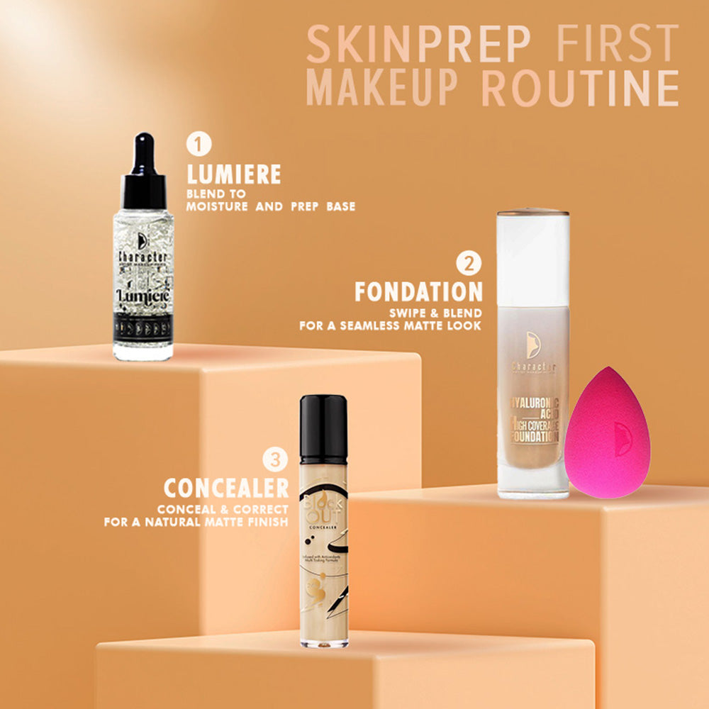 The Character Block Out Concealer upto 16-hrs waterproof concealer with a creaseless and transfer-proof natural matte finish. Lightweight and airy, this blendable, multitasking formula has an extra-large applicator and a precision tip for use all over the face to conceal under-eye circles, correct spots, or to contours.