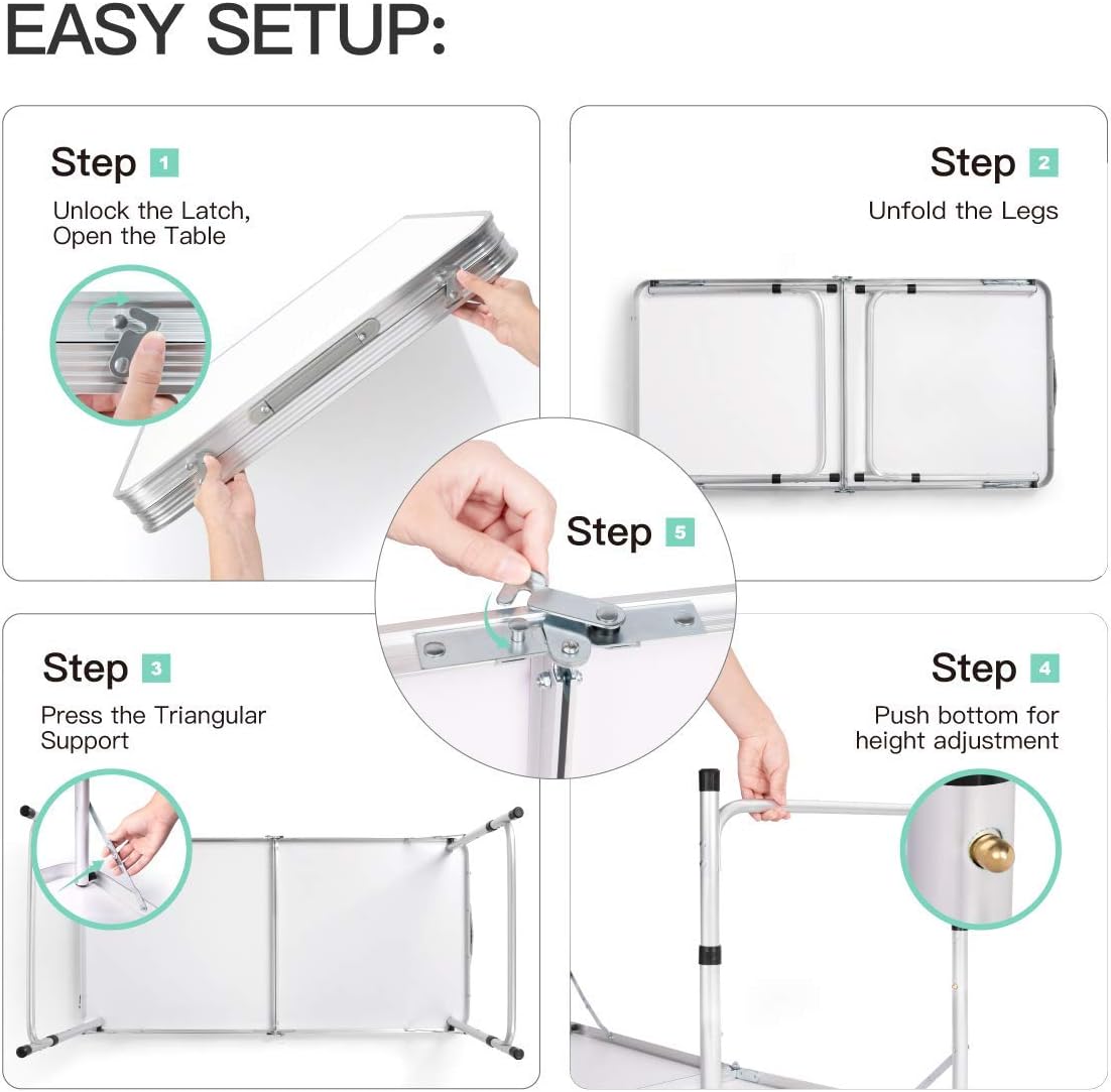 Folding Camping Table, Portable Adjustable Height Table, Lightweight Aluminum Material