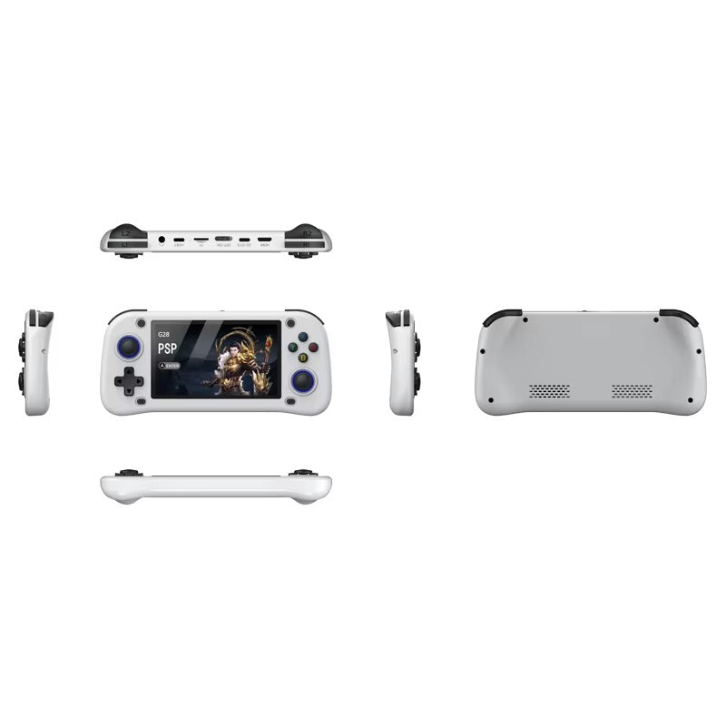 The G28 is engineered for precision and comfort during extended play sessions. It features professional-grade 3D dual analog joysticks with high-sensitivity rockers and ergonomic L1/L2 and R1/R2 shoulder triggers for competitive-level control. For a more immersive experience, the unit includes a top-mounted HDMI output port, allowing you to connect seamlessly to your TV or monitor. With additional support for OTG multiplayer handles and a long-lasting rechargeable battery, this handheld powerhouse is the perfect companion for travel, commuting, or relaxing at home.