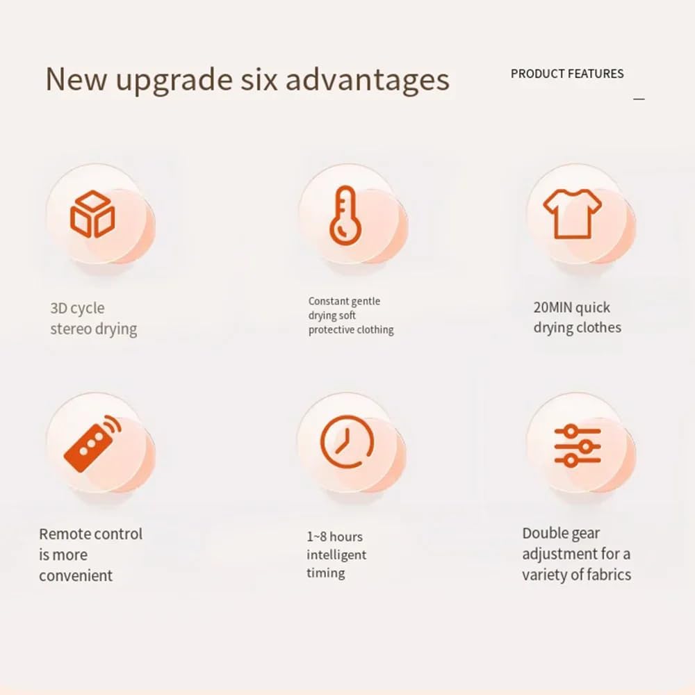 - Easy to Use: Just unfold, add clothes, and let the dryer do the work with no hassle. Its simple and intuitive design makes it effortless to refresh clothes anywhere.