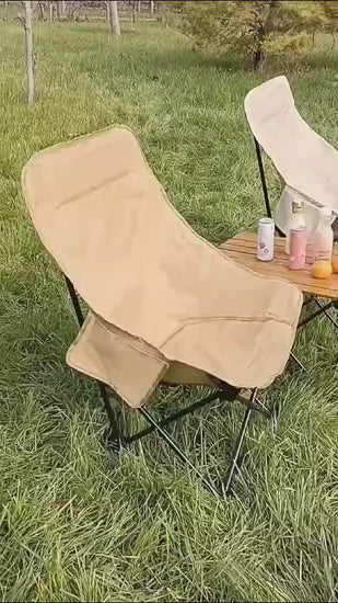 Portable Folding Camping Chair with High Back Upholstered Side Pocket Headrest