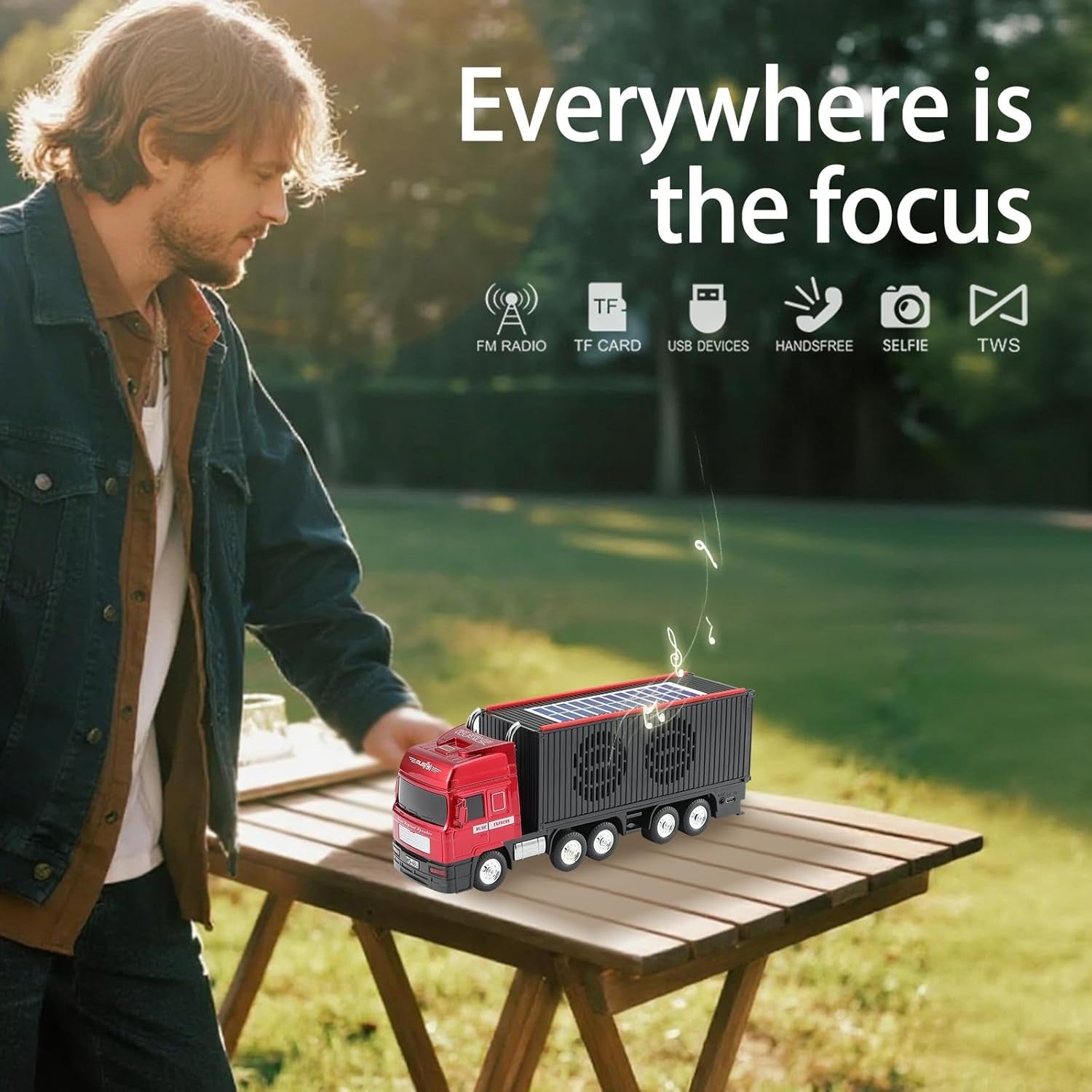 Engineered for ultimate convenience, this wireless speaker features a built-in solar panel on the roof, constantly drawing energy from the sun to extend your playtime while you are outdoors. It offers versatile connectivity options including seamless Bluetooth pairing, USB drive playback, TF card support, and an FM radio mode to keep you entertained anywhere. For a truly immersive audio setup, it supports TWS (True Wireless Stereo) technology, allowing you to easily sync two WS-691 speakers together for expansive stereo sound. Complete with a Type-C charging port, hands-free calling capabilities, and a unique remote selfie function, this multi-functional truck speaker merges fun aesthetics with modern utility.